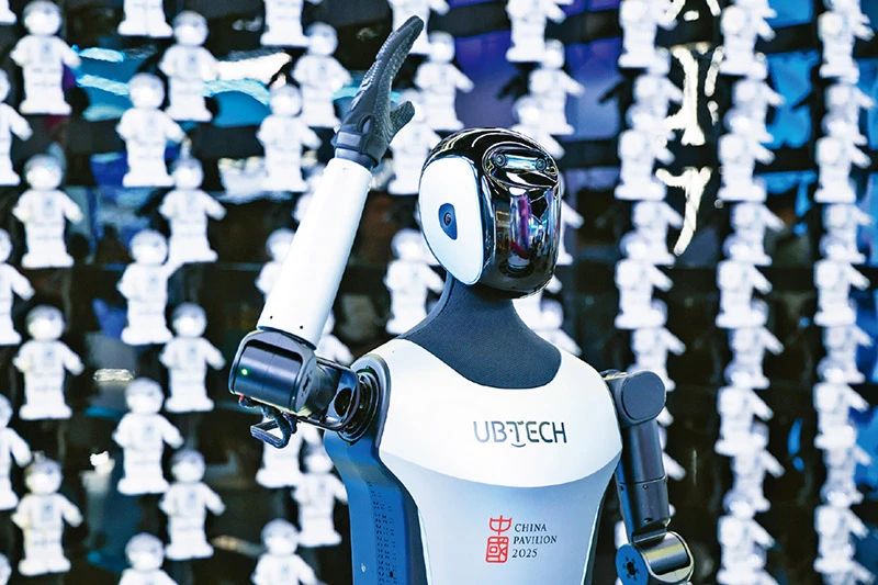 新時(shí)代以來,我國民營企業(yè)創(chuàng)新活力持續(xù)迸發(fā),國家高新技術(shù)企業(yè)中民營企業(yè)占比由62.4%提高至92%以上。圖為2025年4月23日,在深圳優(yōu)必選科技展廳內(nèi),商用版人形機(jī)器人Walker C向觀眾揮手致意。 新華社記者 梁旭/攝