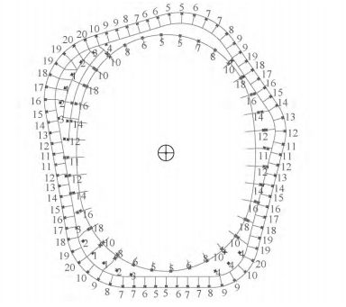基于外圍鋼結(jié)構(gòu)詳細(xì)施工仿真分析及預(yù)應(yīng)力張拉施工仿真分析結(jié)果,綜合考慮鋼結(jié)構(gòu)及預(yù)應(yīng)力張拉施工過程中結(jié)構(gòu)位形變化,確定預(yù)應(yīng)力張拉施工前外圍鋼結(jié)構(gòu)施工完成態(tài)位形。